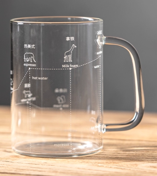 — measuring coffee cup, high-borosilicate glass mug, large-capacity glass cup, pour-over coffee cup Capacity: 475ml Product Features: Borosilicate, Lead-Free, Hand-Firing, Bar Handle, Original Printing