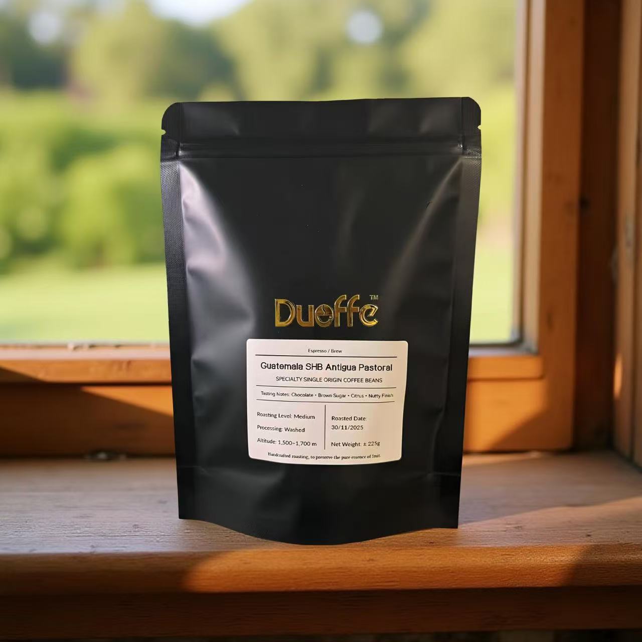 A refined and balanced cup from the highlands of Antigua. Grown at high altitude and carefully processed, this coffee offers gentle sweetness, bright clarity, and a comforting finish—perfect for any moment of the day. Tasting Notes Chocolate • Brown Sugar • Citrus • Nutty Finish Coffee Details Origin: Guatemala Region: Antigua Farm / Producer: Pastoral Grade: SHB (Strictly Hard Bean) Altitude: 1,500-1,700m Roast Level: Medium Bean: 100% Arabica Process: Washed Net Weight: 125g per bag & 225g per bag Recommended For Lovers of a balanced, smooth, and approachable cup. Disclaimer: Product photos are for illustration purposes only. Actual packaging may vary.